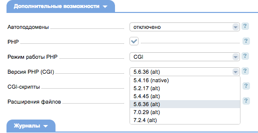 Для использования других версий необходимо перейти в панель управления хостингом и в левом меню -> WWW домены